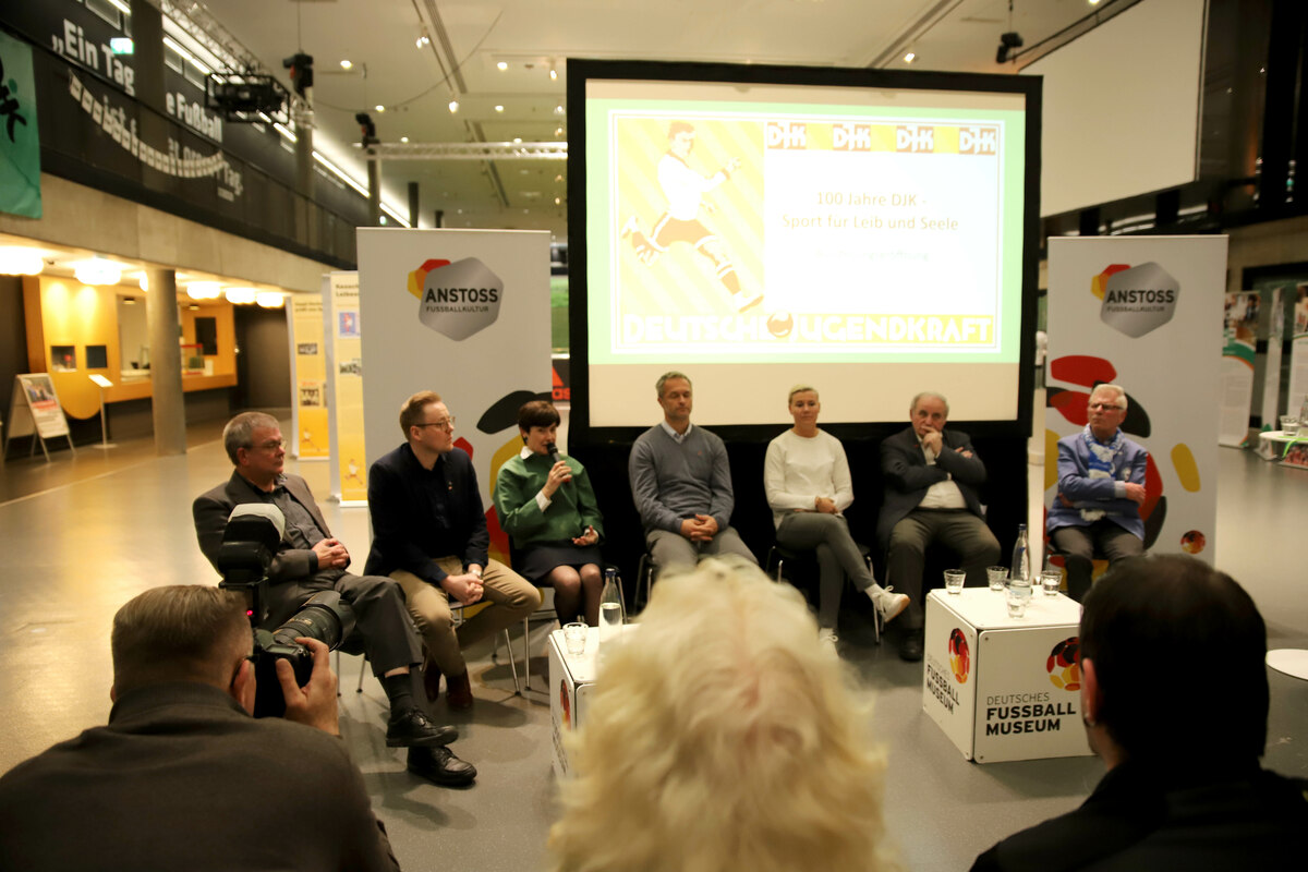 DJK-Präsidentin Elsbeth Beha sagte zum Anpfiff der Sonderausstellung: Ein herzliches Dankeschön an die Verantwortlichen des Museums und den DFB, dass wir in diesem Haus einen ersten Steilpass in unser Jubiläumsjahr spielen dürfen. Als größter Verband mit besonderen Aufgaben im Deutschen Olympischen Sportbund ist es mir eine große Ehre, die Vizepräsidentin Leistungssport, Frau Uschi Schmitz, heute Abend hier willkommen zu heißen.