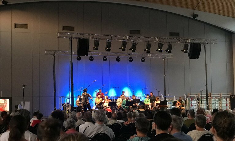 Ein besonderes Ambiente fand das Konzert mit dem Babylon Orchestra am 19. Juni in der denkmalgeschützten Bogenhalle. Die Besucher erlebten einen temperamentvollen kulturellen Austausch zwischen Okzident und Orient. Das 15-köpfige junge Berliner Ensemble, bekannt für seine urbane orientalische Musik, entfaltete in der Bogenhalle eine fantastische Klangwelt, die Sehnsüchte weckte und für ein Miteinander der Kulturen warb. Mit den Instrumenten eines zeitgenössischen Orchesters, kombiniert mit jenen aus dem Mittleren Osten wie zum Beispiel Oud, Kamantsche oder Duduk, zauberte die Band ihren besonderen Sound im Stil einer Bigband .